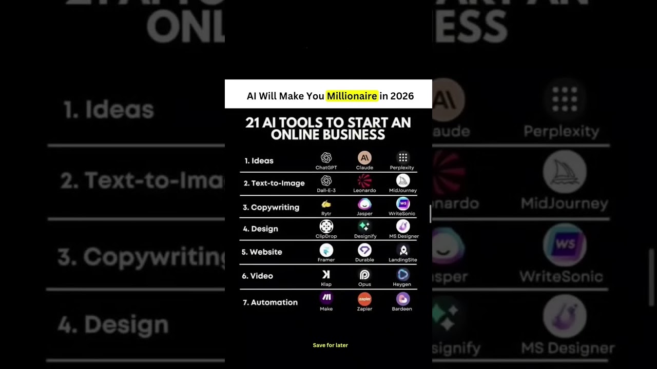 Start Your Business in 2026: 21 AI Tools You Need! #discipline #growthmindset #mindset #ai #aivideo